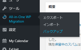 All-in-One WP Migration というプラグインを入れてあります。バックアップにはこれを用います。