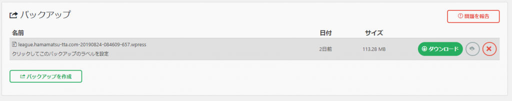 バックアップファイルは大きいファイルです。サーバー上に作成されますが,念の為ダウンロードしておきます。