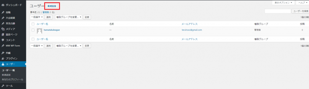 新規追加をクリックし,ユーザーの追加画面に入ります。