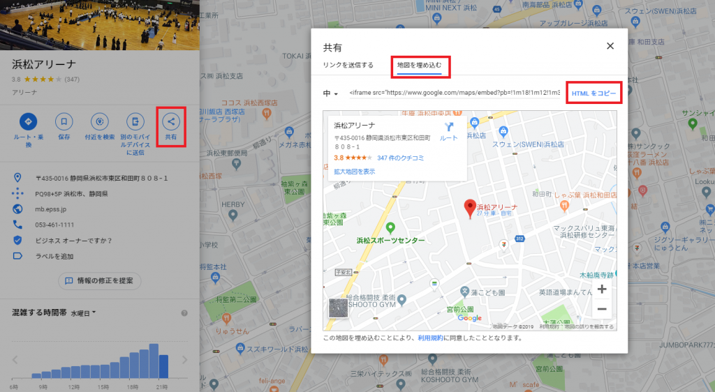 地図の埋め込みは,カスタムHTMLを使用します。