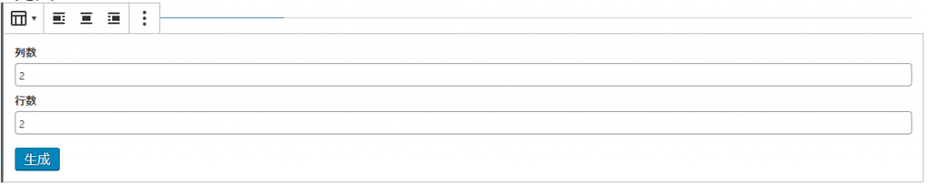 列数と行数を適当に入れます。数はあとで修正できますので,正確に入力する必要はありません。生成ボタンを押すと,テーブルが表示されます。