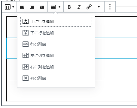テーブルの編集ボタンを押すと,行や列を追加したり削除したりするドロップダウンボックスが表示されるので,それを選択した調整します。