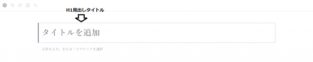 記事作成画面のタイトルを追加に入力された文字がH1見出しタイトルになります。